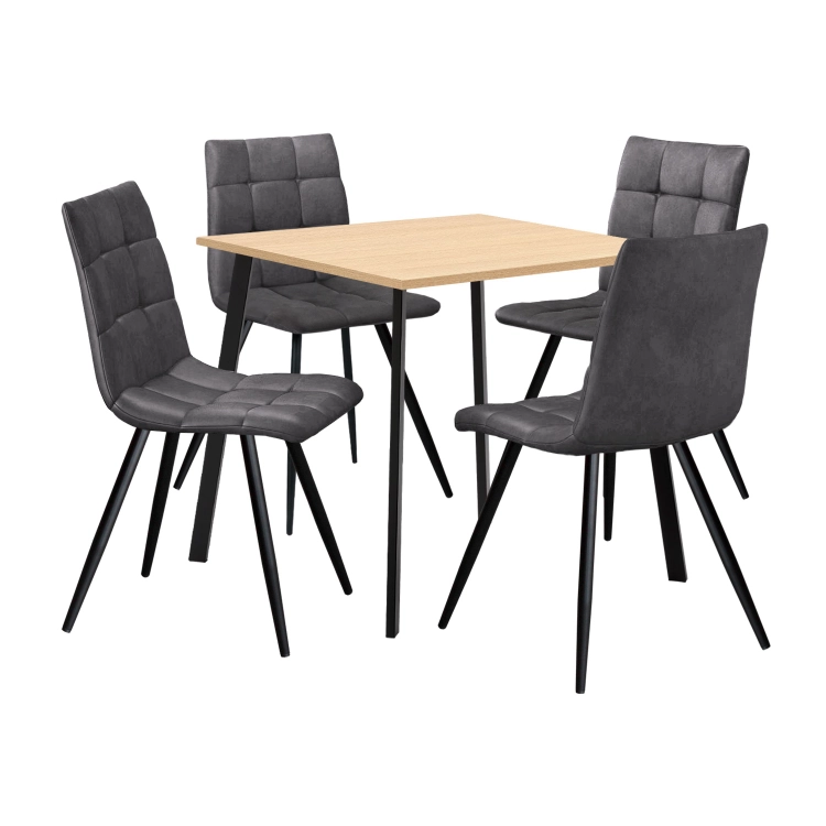 jídelní stůl BERGEN 4098 a 4 jídelní židle BERGEN 4094 stůl: deska MDF, barevné provedení dub kovová konstrukce, barevné provedení černá židle: potah broušená kůže – imitace mikrovlákno, barevné provedení antracitová kovová konstrukce, barevné provedení černá výška sedu židle 51 cm rozměr stolu (š/h/v) 80 × 80 × 75 cm rozměr židle (š/h/v) 45 × 52 × 88 cm