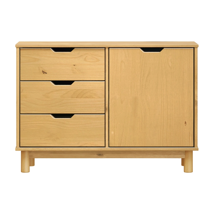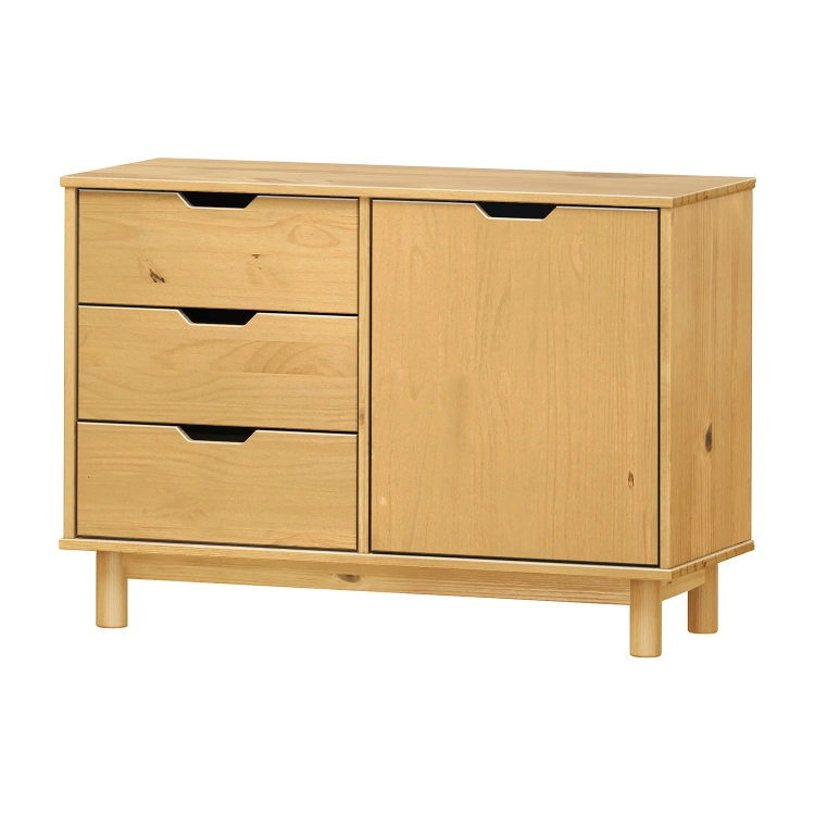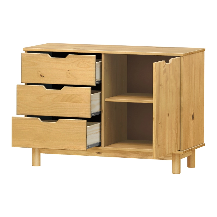 materiál masiv borovice voskovaná v medovém odstínu 3 zásuvky s kovovými pojezdy, 1 dvířka, 1 police