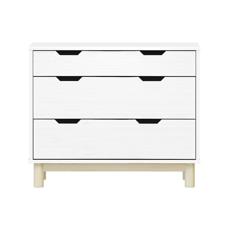 materiál masiv borovice, barevné provedení bílý lak 1 menší a 2 větší zásuvky s kovovými pojezdy
