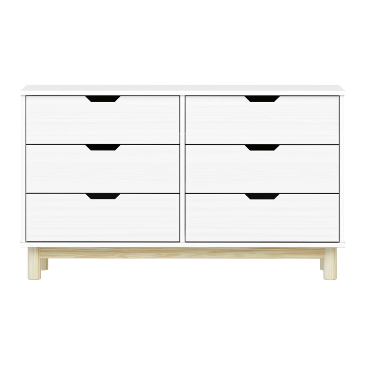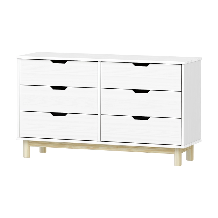materiál masiv borovice, barevné provedení bílý lak 6 zásuvek s kovovými pojezdy