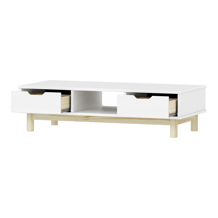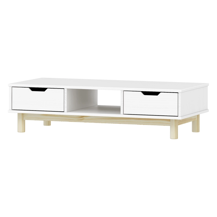 Materiál Masiv Barva Bílá Dekor dřeva borovice Rozměry (cm) 110 x 55 x 30 cm Váha: 20 kg Přepravní rozměry a info: Karton: 2 ks Kód produktu: mp-324391b-konferencni-stolek-bonito-2-bily-lak / 324391B -