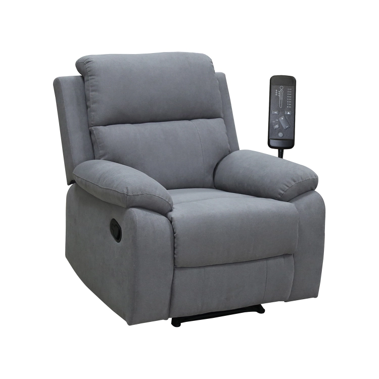 textilní potah, barevné provedení světle šedá elektrické ovládání, 8 masážních programů, 2 stupně intenzity nastavení oblasti masáže (zádová nebo bederní) automatické vypnutí po 15 nebo 30 minutách výška sedu 47 cm, šířka sedu 52 cm, hloubka sedu 60 cm doporučená nosnost do 120 kg