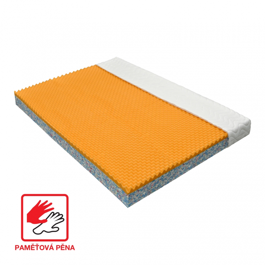 paměťová pěna střední tuhosti (vrstva 4 cm), jádro z odolné RE pěny dobré ortopedické vlastností a dlouhá životnost matrace vhodná pro všechny typy roštů potah prodyšný, vyrobený ze dvou částí, pratelný do 60 °C doporučená nosnost do 130 kg