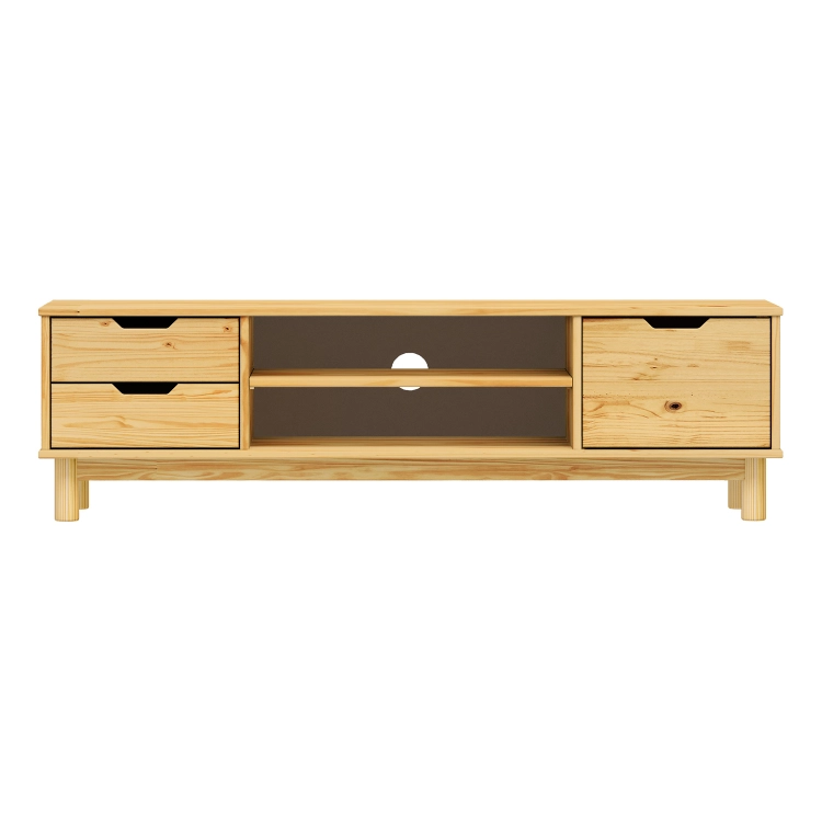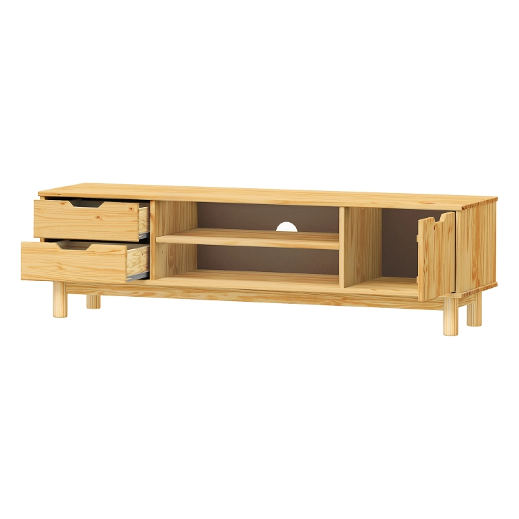 Materiál Masiv Dekor dřeva borovice Rozměry (cm) 140 x 40 x 41 cm Váha: 22 kg Přepravní rozměry a info: Karton: 2 ks Kód produktu: mp-324101-tv-stolek-1-dvere-2-zasuvky-bonito-2-lak / 324101 -