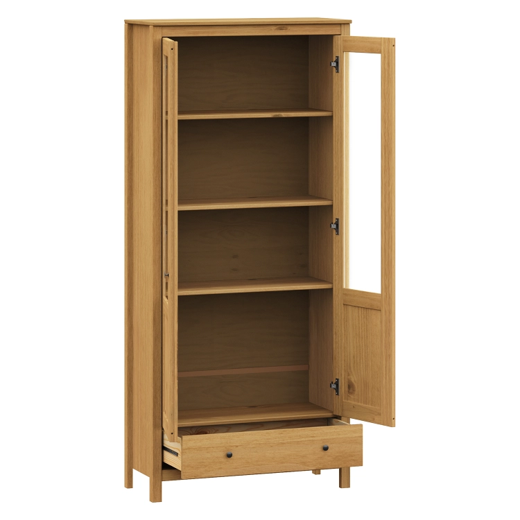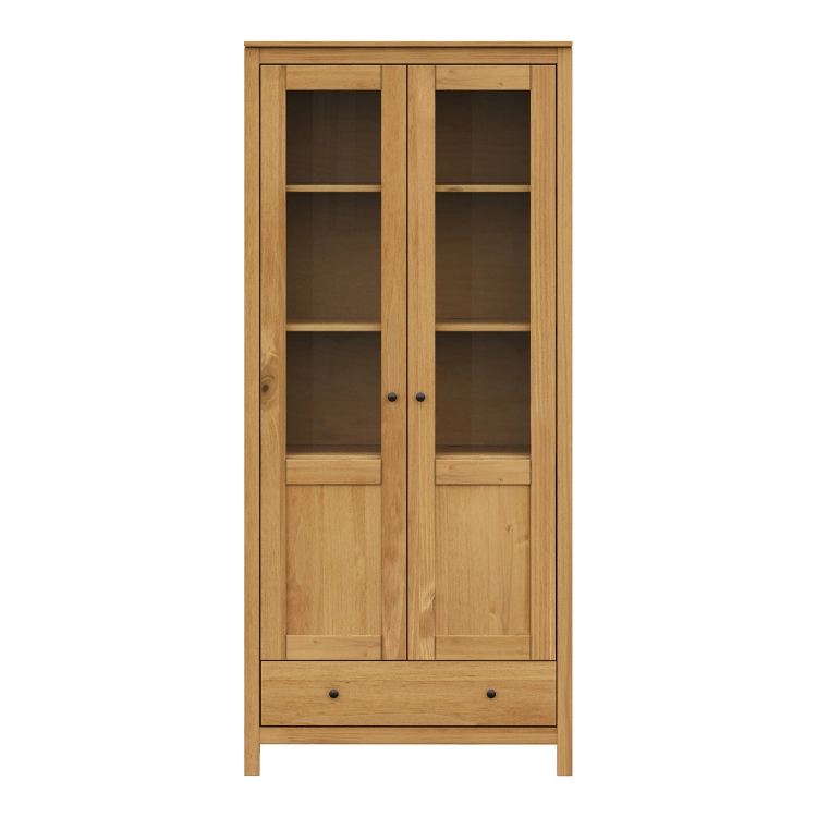 Materiál Masiv Dekor dřeva borovice Rozměry (cm) 85 x 37 x 190 cm Váha: 38 kg Přepravní rozměry a info: Karton: 1 ks Kód produktu: mp-8073v-vitrina-2-dvere-1-zasuvka-torino-vosk / 8073V -